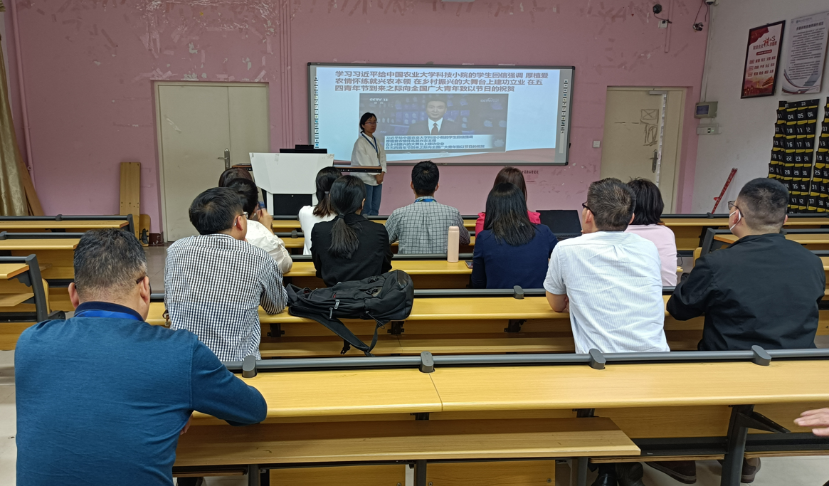 支部副书记何建老师首先领读了习近平给中国农业大学科技小院的同学们的回信内容,习近平总书记在回信中对科技小院师生提出了殷切期望,向全国广大青年致以节日的祝贺。习近平总书记强调,青年人就要“自找苦吃”,新时代中国青年就应该有这股精气神,寄语同学们志存高远、脚踏实地,把课堂学习和乡村实践紧密结合起来,厚植爱农情怀,练就兴农本领,在乡村振兴的大舞台上建功立业,为加快推进农业农村现代化、全面建设社会主义现代化国家贡献青春力量。