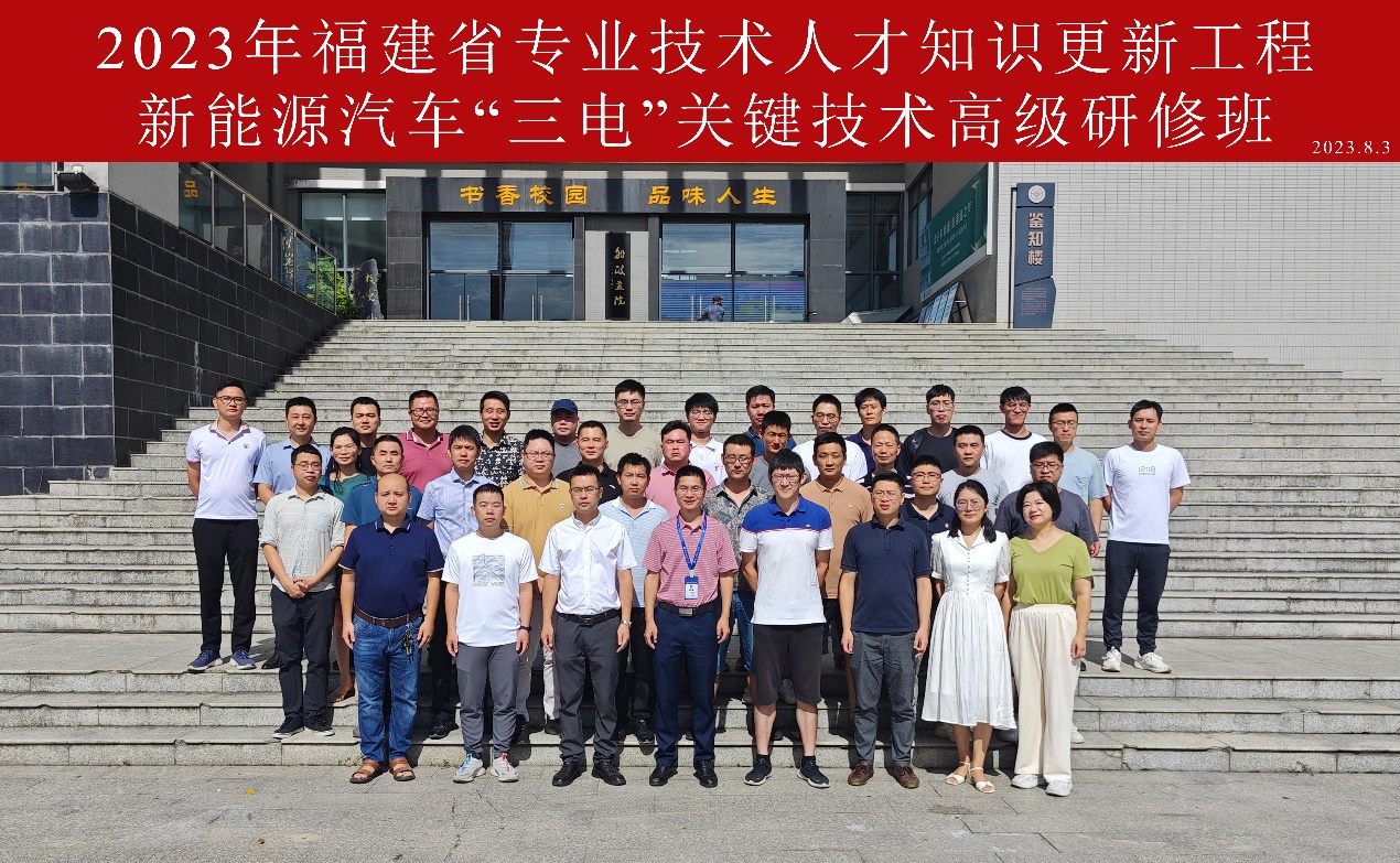 针对我省近年来高速发展的新能源汽车产业,依托我校在新能源汽车技术领域办学成果的优势。2023年福建省专业技术人才知识更新工程关于新能源汽车“三电”关键技术高级研修班(简称“高研班”)于8月3日在我校顺利举行开班仪式。