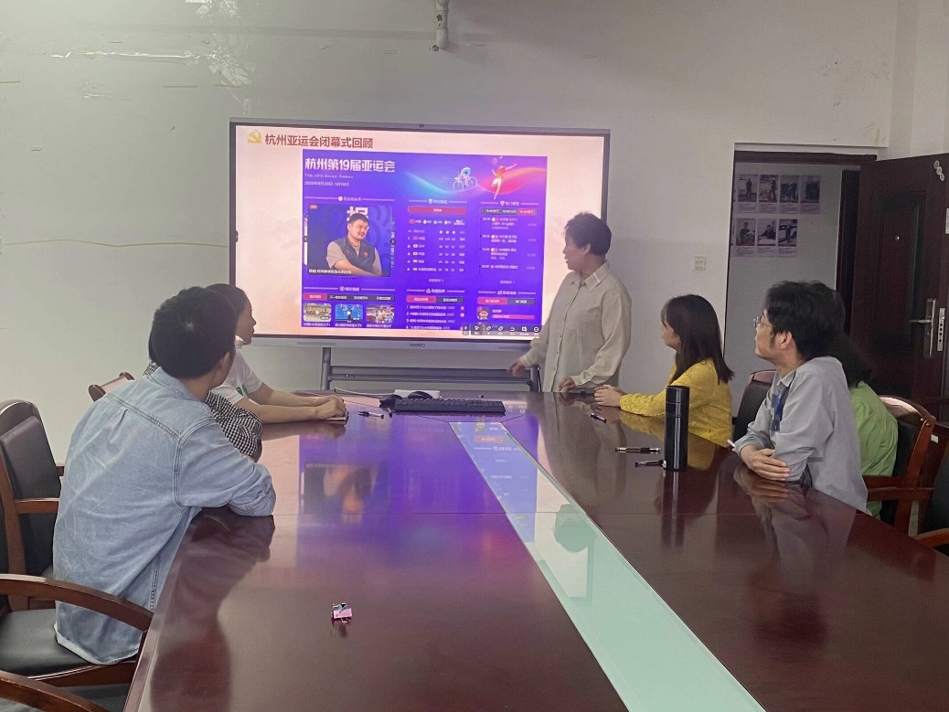 首先,朱剑宝带领支部党员回顾了杭州亚运会闭幕式,闭幕式气氛欢快,支部党员感受颇多。大家为亚运会的成功举办而欢呼,为中国展示出的大国风采而骄傲,为运动健儿奋力拼搏后脸上洋溢的笑容而感动。
