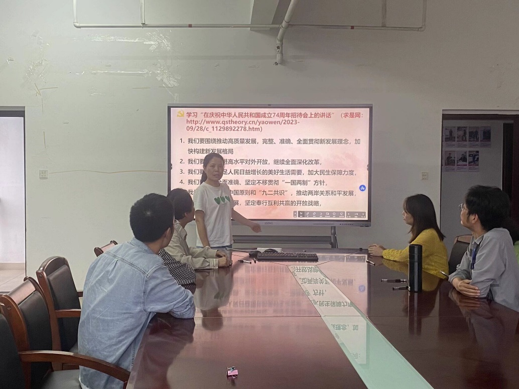 随后朱剑宝同志组织大家学习习近平总书记“在庆祝中华人民共和国成立74周年招待会上的讲话”及“习近平:扎实推动教育强国建设”。学习结束朱剑宝组织支部党员结合自身实际交流讨论期中教学的收获与不足,大家纷纷表示今后将认真学习领会报告精神,抓实立德树人各项工作,培养更多高素质人才。