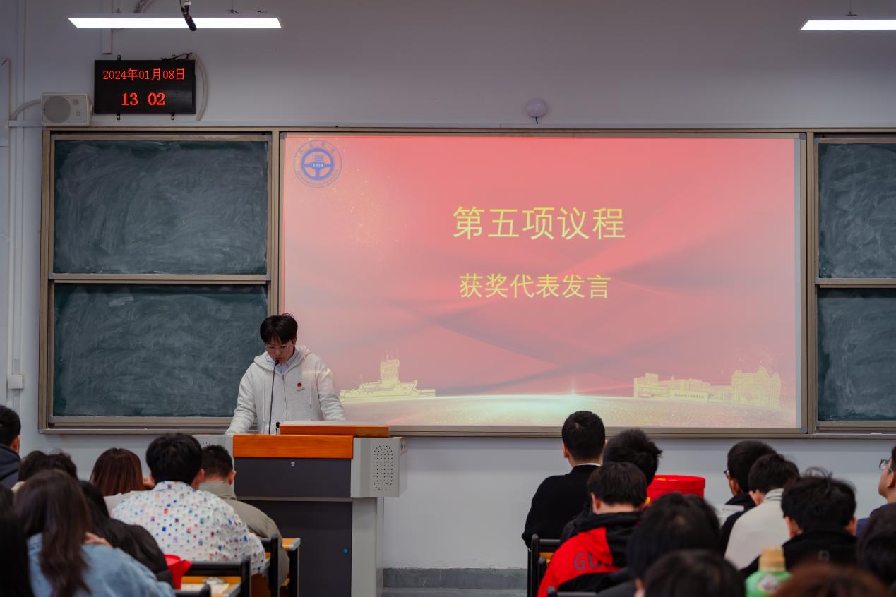 大会伊始,由汽车学院学生宿舍管理专项负责人陈泽承老师致辞,他对过去一个月来辛勤付出垒筑起的学院文明宿舍新高度的同学致以诚挚的谢意。艰难困苦,玉汝于成,他强调汽车学院能够获得校级文明宿舍建设月“最佳组织单位”,是全体师生同心同向、众志成城、用心血和汗水浇灌出的荣誉之花。同时他对在场的同学提出殷切期望,希望大家拿出“翻篇归零,乘势而上”的奋进姿态,摒弃“刀枪入库,马放南山”的懈怠心理,牢固树立创建文明宿舍只有起点没有终点的意识,以点带面,勠力同心,持续擦亮这块金字招牌,不断巩固并扩大已有的文明宿舍创建成果。