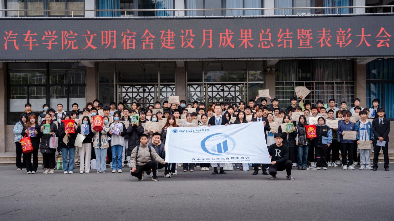 随后,由汽车学院大学生自律委员会主席黄善彬宣读表彰决定。他表示,过去一个月汽车学院自律会紧紧围绕《福建船政交通职业学院学生宿舍管理规定》中关于创建文明宿舍总体要求,坚决落实学院领导及负责老师提出的具体要求,经学校相关部门评审出校级文明宿舍17间,共计136位同学,并公布了具体名单。
