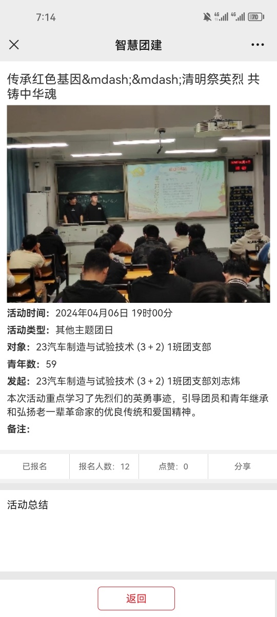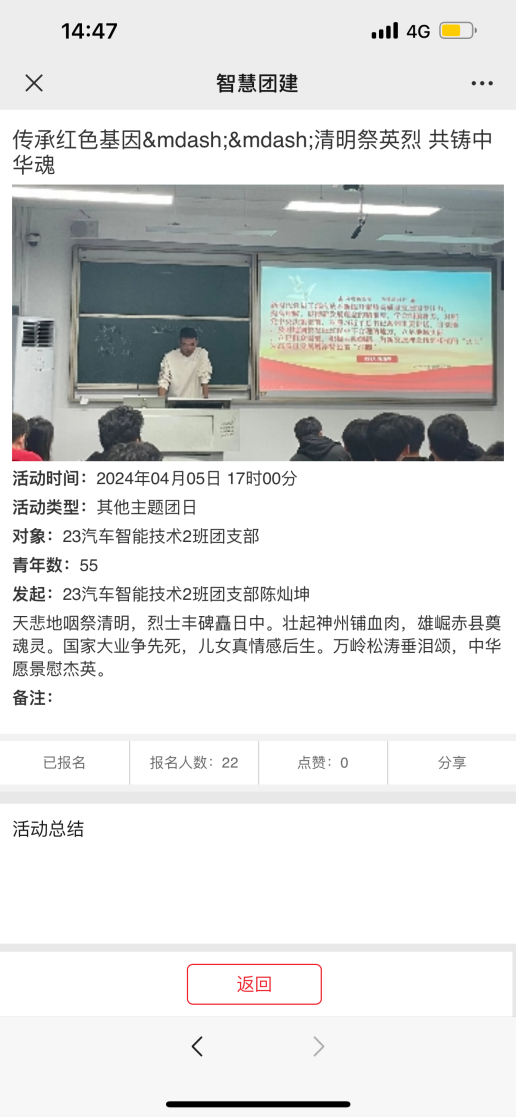 历史记忆历久弥新,英烈精神传承永续。为学习贯彻习近平新时代中国特色社会主义思想,进一步弘扬爱国主义精神和优秀传统文化,赓续红色血脉,传承红色基因。汽车学院组织开展“传承红色基因—共铸中华魂”清明祭英烈主题团日活动,通过观看《缅怀英烈忆长征》纪录片,引导团员和青年追思革命先烈们艰苦奋斗、为国牺牲的崇高革命精神,自觉继承和弘扬老一辈革命家的爱国情怀。