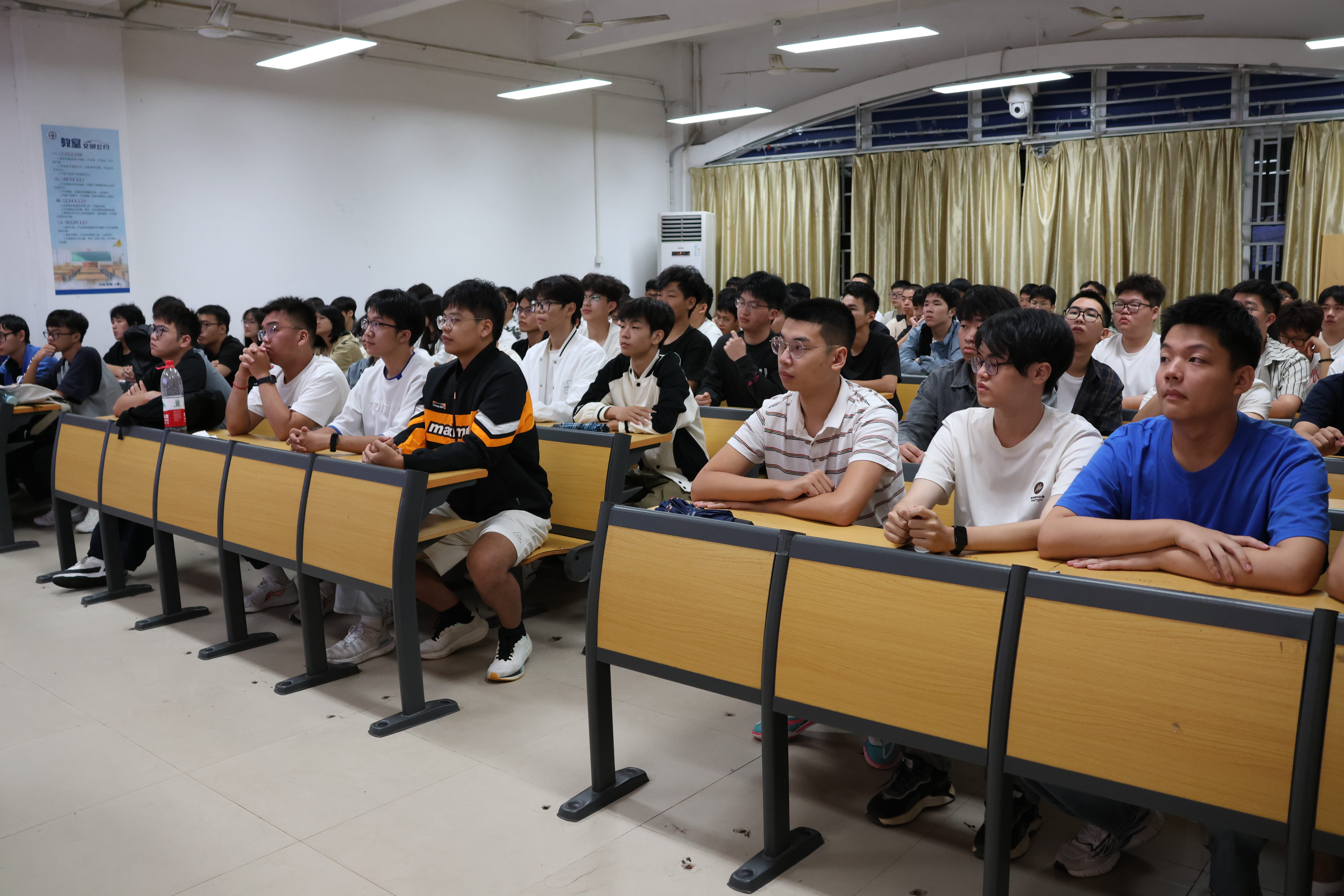 10月8日,汽车学院辅导员曾应文老师,为24智能网联汽车技术1-2班的全体100名学生作专题宣讲。宣讲会上,曾老师将党的二十届三中全会的核心要义、重大决策部署以及对于我国智能网联汽车技术发展的深远意义,进行了深入浅出的剖析。他强调,当前正处于智能网联汽车技术发展的关键时期,全会提出的科技创新战略、产业升级方向等,为行业未来发展指明了方向,也为在座每一位学子提供了广阔的成长舞台和无限的可能。曾老师还鼓励学生们要紧跟时代步伐,将个人理想融入国家发展大局之中,积极学习前沿技术,勇于创新实践,努力成为推动智能网联汽车技术进步、引领行业变革的生力军。