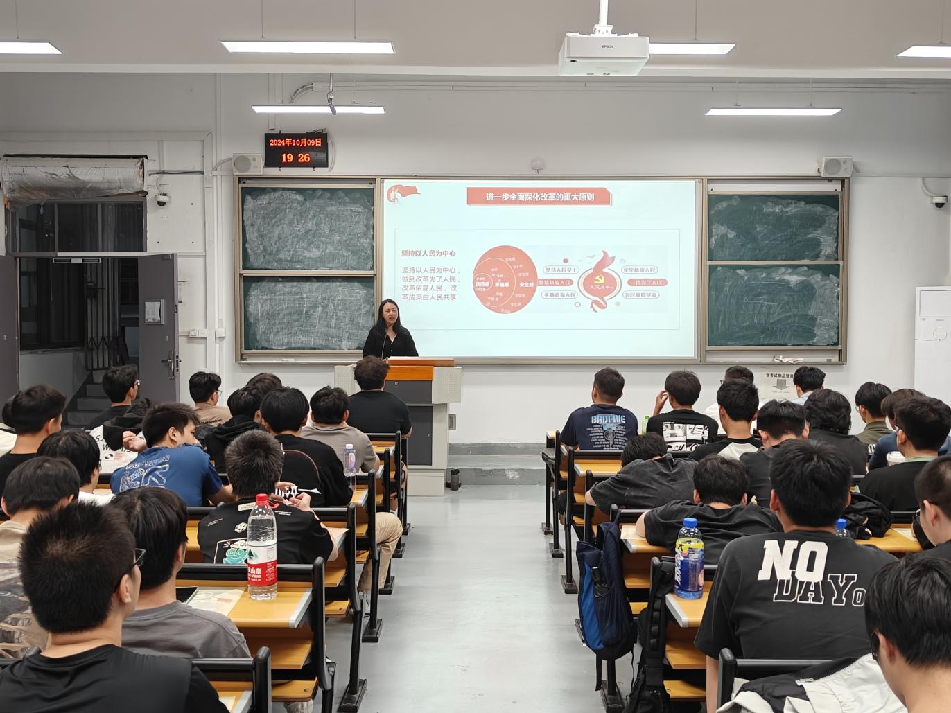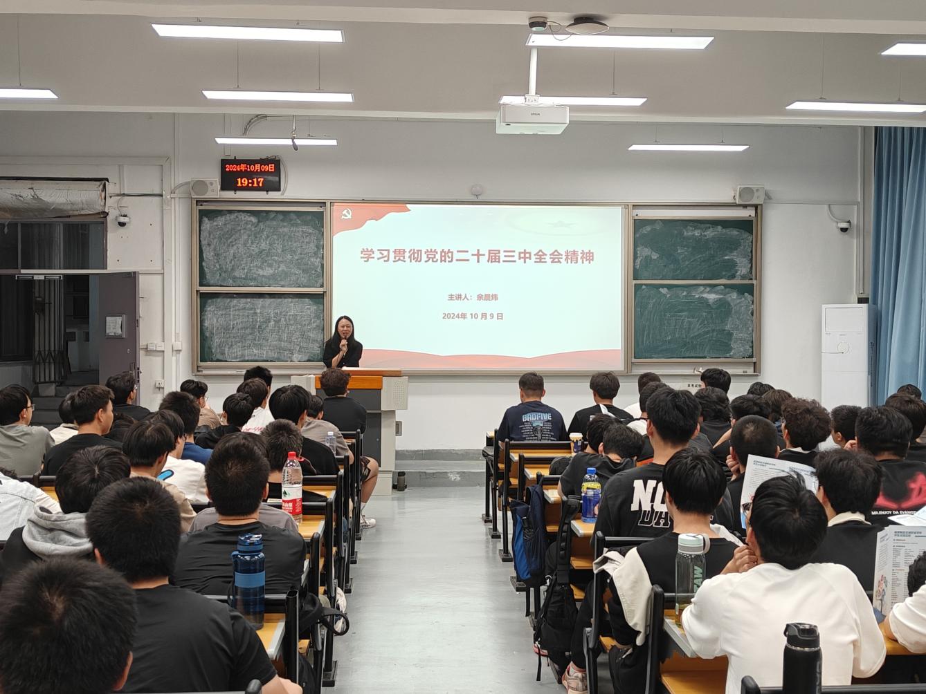 汽车学院辅导员余晨炜于10月9日,在北区求是楼第四阶梯教室举行宣讲活动,24级汽车检测与维修技术(3+2)专业共110名青年学子参会。活动现场,余晨炜老师围绕“全面深化改革的重要性、必然性和主要内容”等方面详细阐述,通过深入解读,帮助同学们进一步领会党的二十届三中全会的丰富内涵和核心要义。激励广大青年学子要在深学细悟上下功夫,切实增强进一步全面深化改革的政治自觉、思想自觉和行动自觉,为实现中华民族伟大复兴的中国梦贡献青春力量。