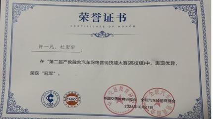 为提升汽车营销人员在新媒体营销领域的专业素养,助力推进全国职业院校汽车技术服务与营销专业的建设水平和师资能力,深入挖掘汽车流通行业产教融合潜力,助力汽车产业新零售及教育领域的革新,由中国交通教育研究会主办的第二届产教融合汽车网络营销技能大赛于2024 年10月25-28日在北京举行。