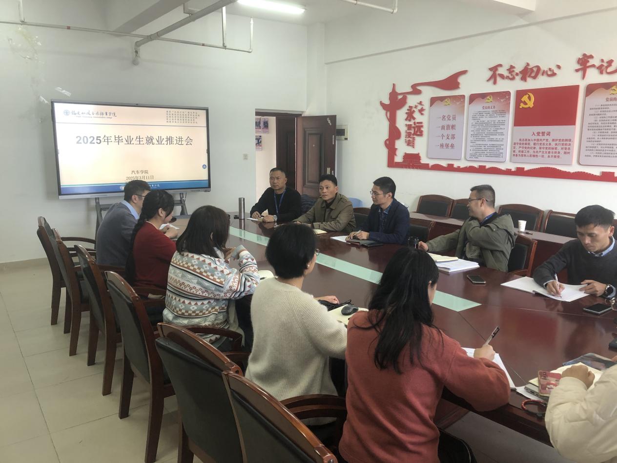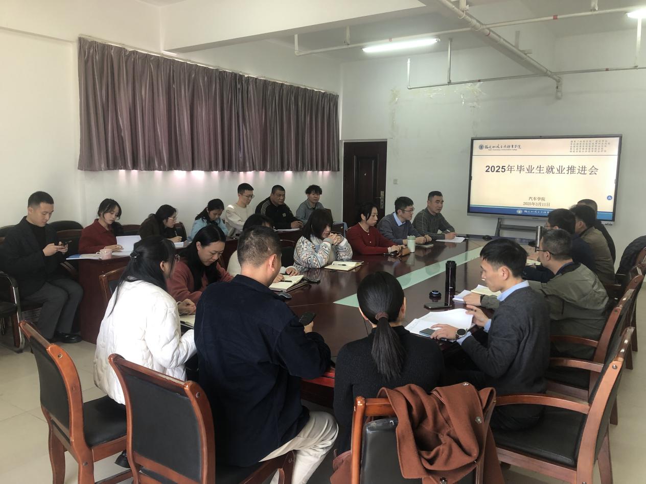 为扎实推进毕业生就业工作,助力毕业生高质量就业,汽车学院于3月11日召开2025届毕业生就业推进会。会议由汽车学院党总支书记蔡华锦主持,学院领导班子、各教研室主任、毕业班辅导员参加会议。