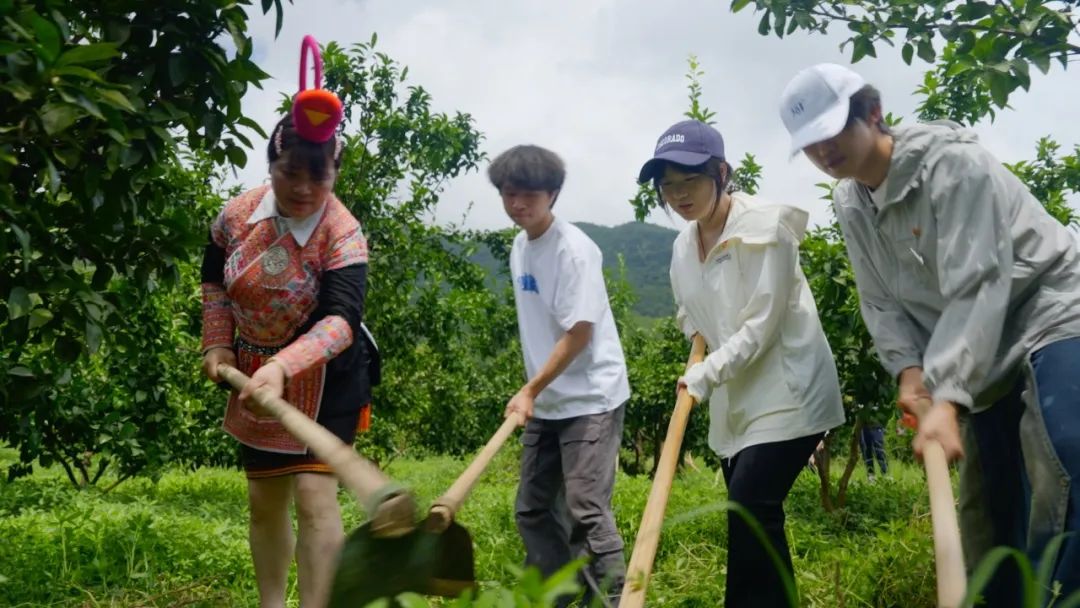 “党建怎么带活一个村?”“畲族婚俗有哪些讲究?”“革命时期南洋村出过哪些英雄?”“如何打造一村一品?”四个访谈小组带着问题穿梭在村庄各处。挂职干部展示的“红黑榜”台账、畲族阿婆讲述的凤凰传说、老党员回忆的“地下交通站”往事……这些带着泥土气息的答案,让学生们在笔记本上写得密密麻麻。师生们还走进砂糖橘果园参与除草、修剪等劳动,了解特色水果的种植技术,亲身体验农业生产的艰辛与乐趣。学生代表王雨涵说出“原来乡村振兴需要我们懂政策、懂技术,更要懂民心”时,掌声里满是青春与土地的共鸣。