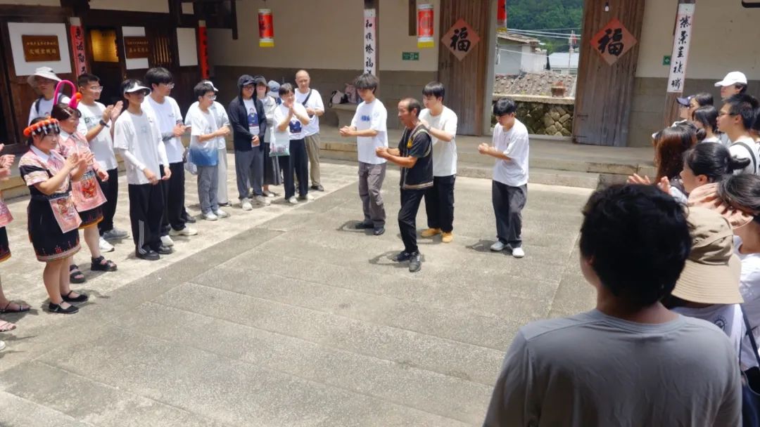 走进200多年历史的“蓝家大院”,木雕梁枋上的凤凰纹饰栩栩如生。畲族同胞向同学们介绍畲族服饰制作、畲医畲药和畲拳等,身体力行加上用心感悟,同学们不但学会了“一左一右”的编织技巧、还了解了"以食为补、依法而动"畲医理念,更掌握了“冲、扭、顶”的武术要领。参加实践的学生纷纷感慨:“畲族文化的保护与创新,让我们看到传统文化在乡村振兴中的独特价值。”