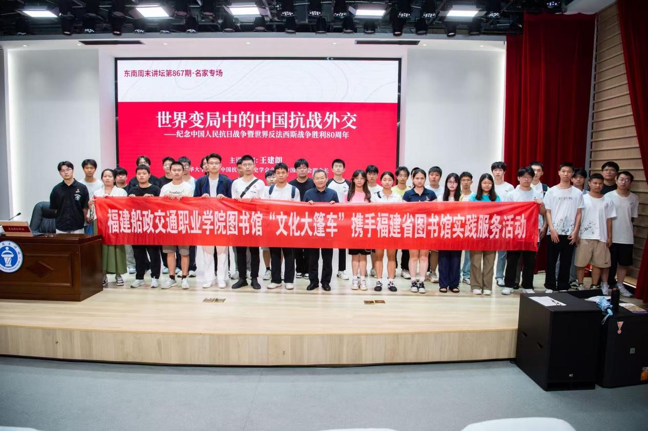为深入学习贯彻党的二十大精神,纪念中国人民抗日战争暨世界反法西斯战争胜利80周年,引导船政学子铭记历史、缅怀先烈、珍爱和平,我校图书馆“文化大篷车”携手省图书馆开展纪念中国人民抗日战争暨世界反法西斯战争胜利80周年社会实践活动,激励船政师生传承红色基因,勇担时代使命。