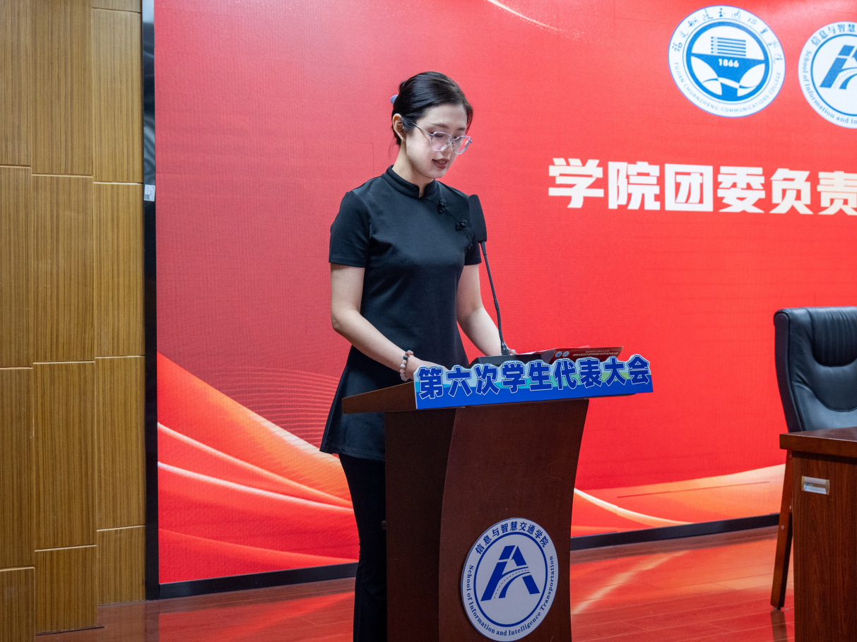 为了深入贯彻落实习近平总书记关于青年工作的重要思想,全面践行党的教育方针,扎实推进立德树人根本任务,全方位提升学生骨干队伍建设水平,为学院教育事业的高质量发展与学生的全面成长成才注入强劲动力。2025年5月24日上午,信息与智慧交通学院第六次学生代表大会在福道园行政楼6楼学术报告厅举行。