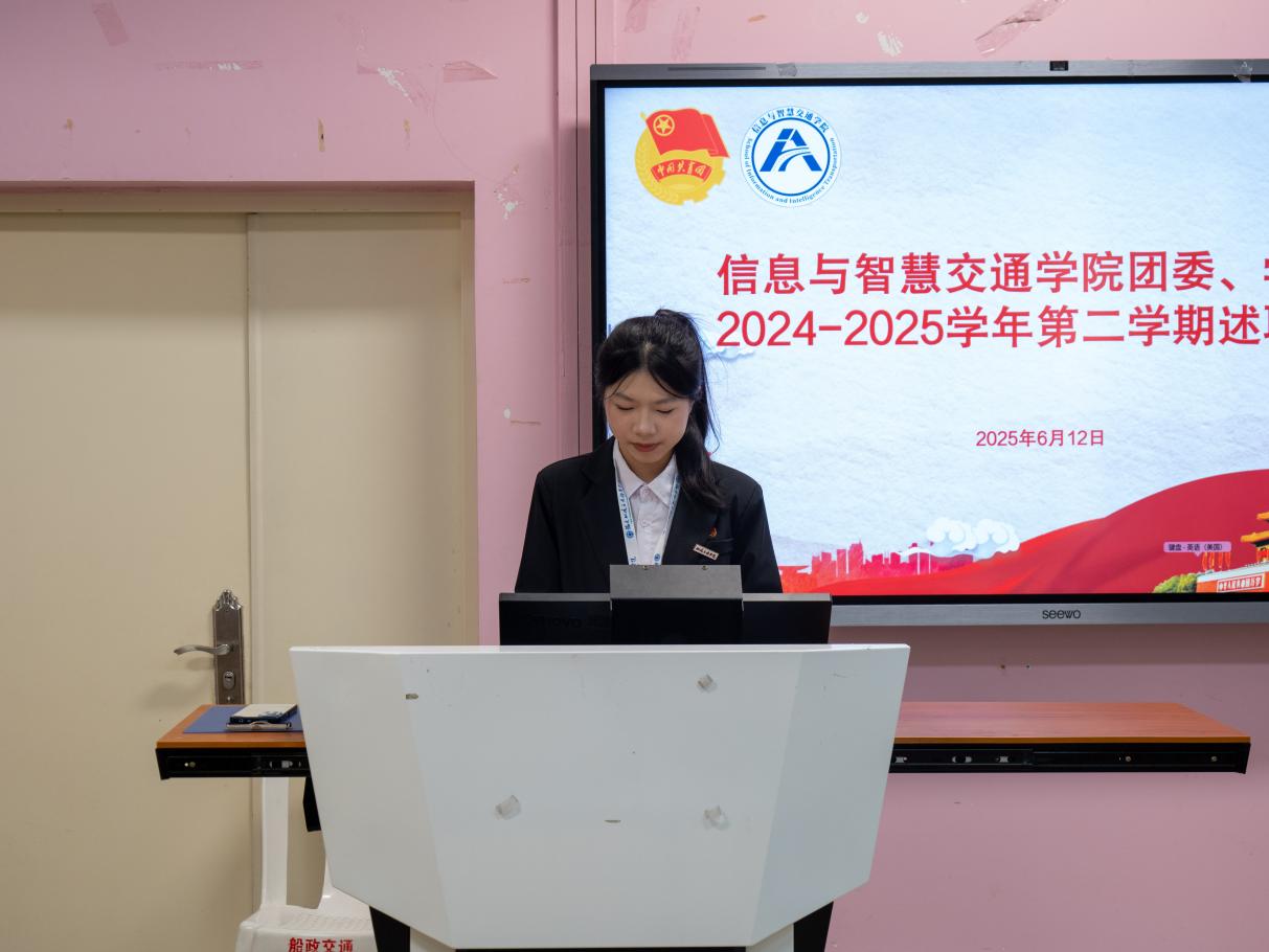 通过本次述职大会,全体团学干部进一步明确了自身职责,增强了团队协作能力与问题解决能力。未来,信息与智慧交通学院团学组织将以本次述职大会为新起点,秉持“知行合一、守正创新”的理念,持续优化工作方法,提升服务水平,助力学生全面发展,为学院建设添砖加瓦。