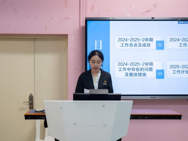 学院分团委副书记沈晨晞对本次述职大会进行总结。她首先对各位团学干部在过去一学期的辛勤付出和取得的成绩表示肯定,并强调,本次大会是工作成果的集中展示,也是对未来工作的展望。希望在接下来的工作中,大家能够继续总结经验、开拓创新,全力谱写团学工作高质量发展新篇章,为学院发展贡献力量。