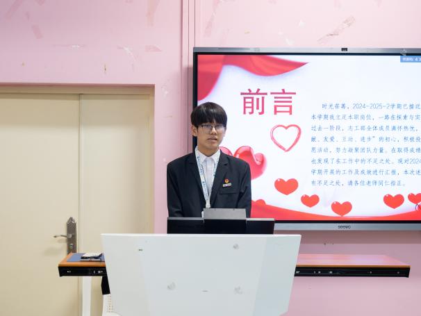 会上,院团委、学生会各部门依次上台进行述职汇报,回顾了本学期工作成果与不足。各部门以数据和案例为支撑,全面总结了在组织建设、活动开展、服务同学等方面的工作成效。同时也对工作中存在的问题进行了深入反思,形成重点改进措施清单,对未来工作计划做出规划,提出具体行动方案。