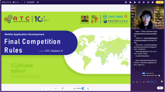 历经一月密集培训,移动应用开发赛项决赛成功举办,来自肯尼亚、埃及、加纳、乌干达、坦桑尼亚、赞比亚、津巴布韦7个国家的56支队伍、224名师生尽展所学、佳绩频传。中航国际成套设备有限公司在感谢信中高度评价:“郑志娴、李伙钦两位老师耐心授课、悉心指导,以及黄鸿杰等5位同学组成的线上学员管理团队克服时差认真负责,受到广大学员喜爱和欢迎。”